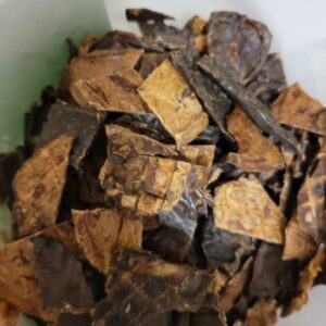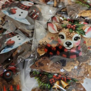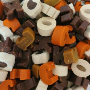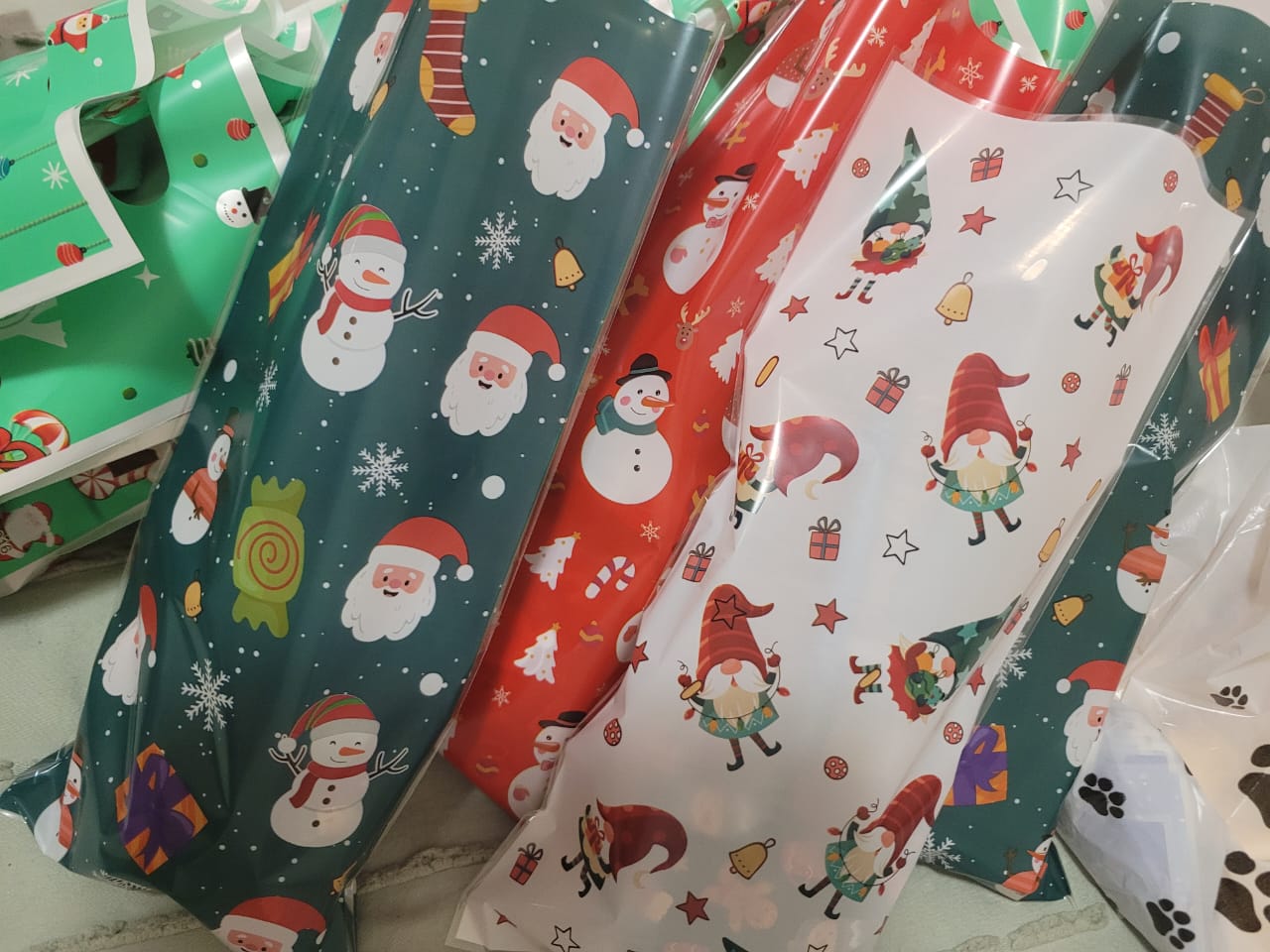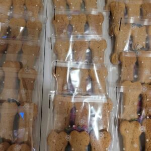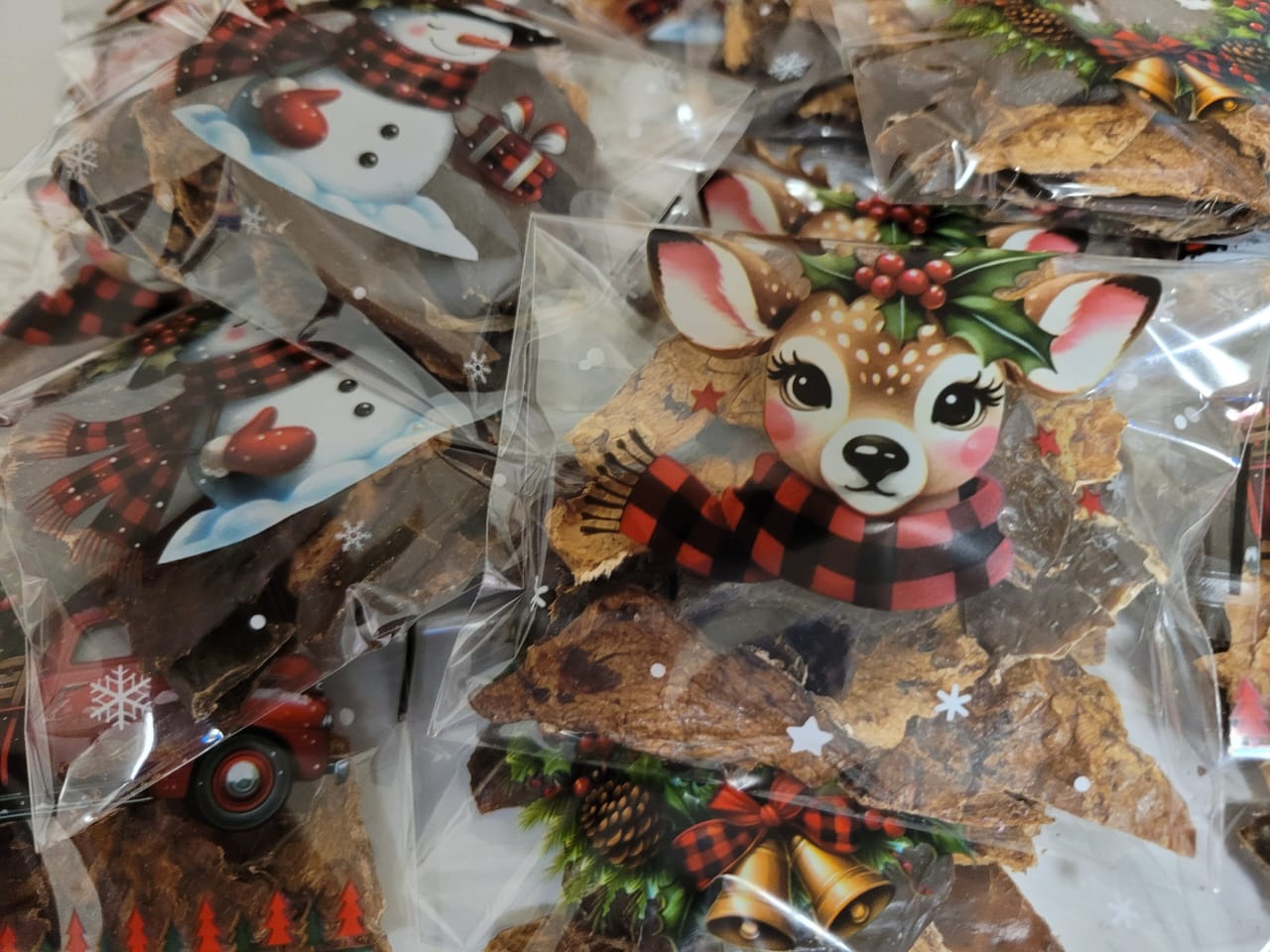 The 2025 Christmas Pawty Pack is brimming to the top with a variety of five treats, each wrapped individually, inside of the bag.
